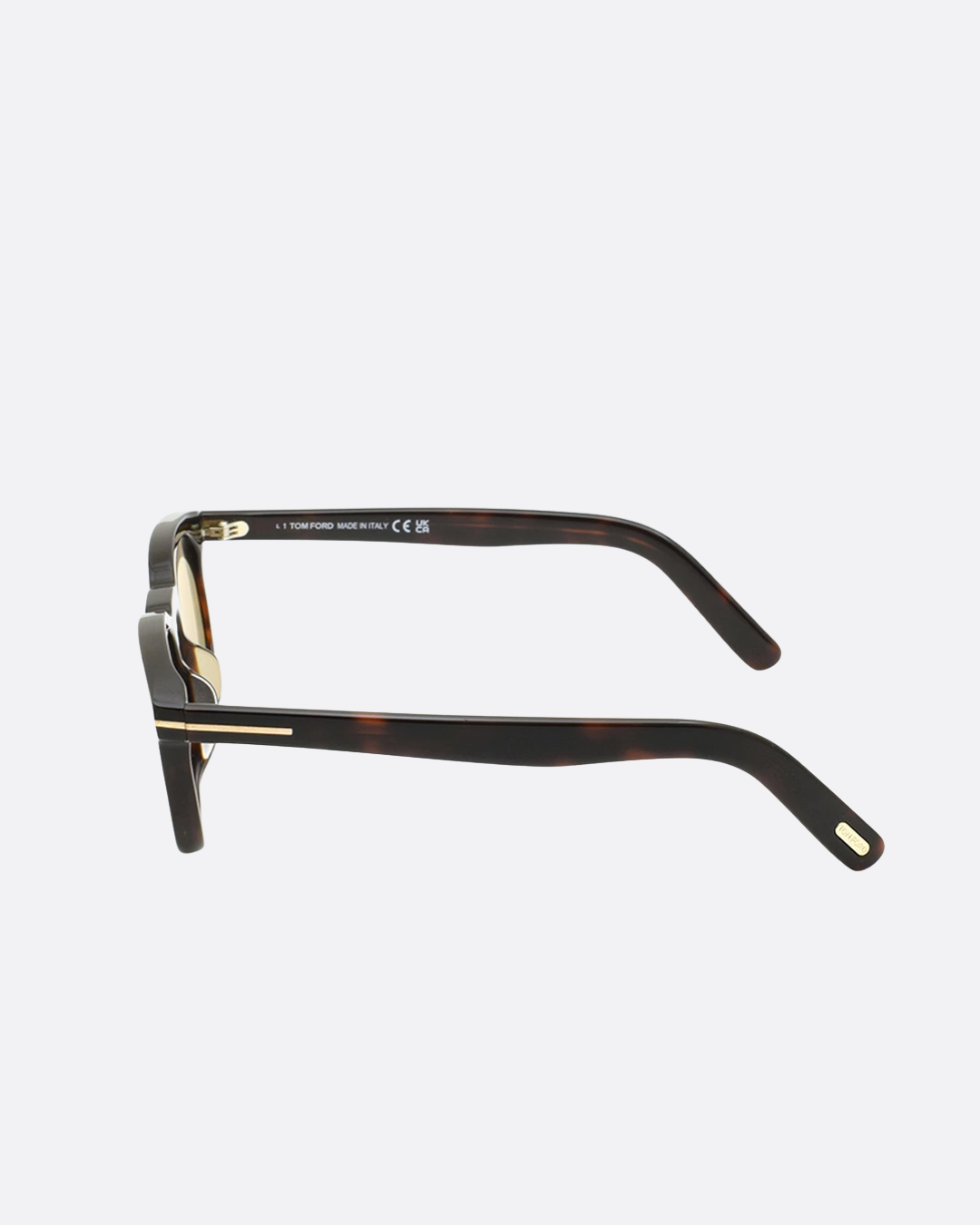Lunettes de soleil FT1122-D de Tom Ford. Coloris : 52E – Marron brillant,  Écaille marron. Taille : 52-20-145, orné d’un « T » métallique sur les branches et d’un logo « T » également en métal.